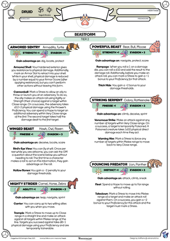 Planned Updates!Extra Card SheetBeastformCompanionsPage 2 with Inventory