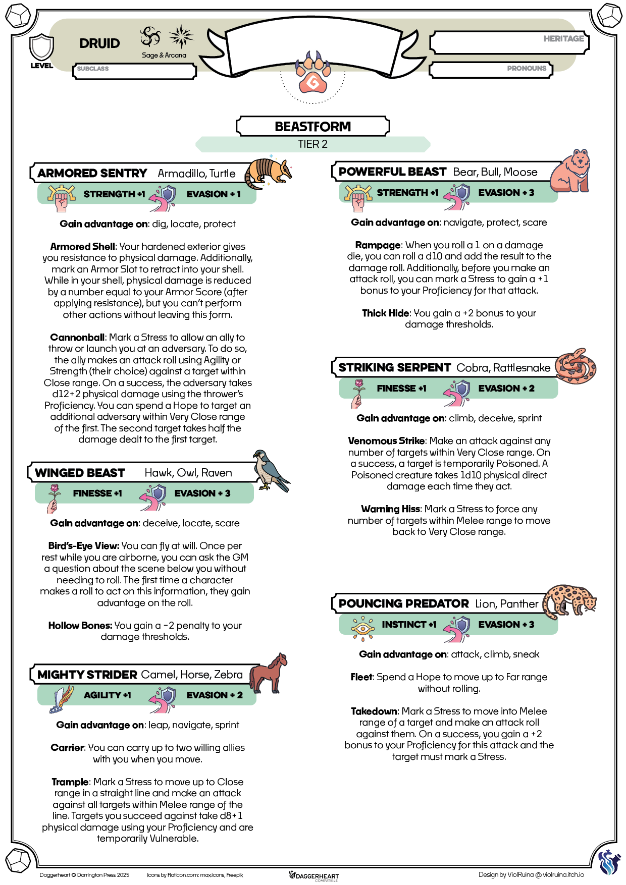 (Now with extra card sheet, inventory page, journal, GM Tracker, ranger companion and druid beastform!)